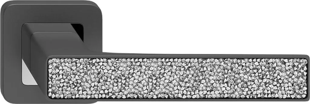 DECO ajtókilincs kerek rozettás grafit + GLAMOUR betét ezüst kristályok WC