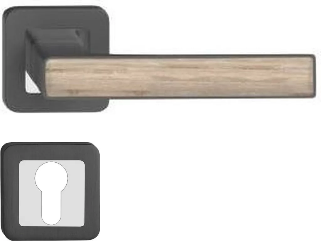 DECO ajtókilincs kerek rozettás grafit + Sonoma tölgyfa betét PZ
