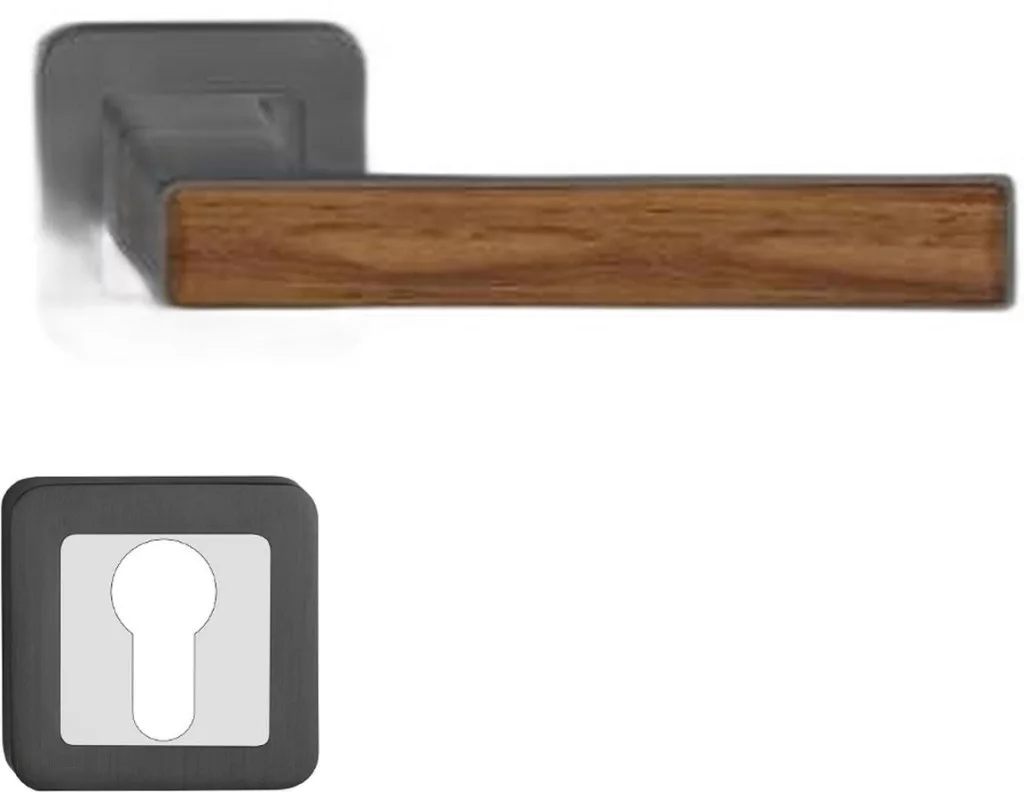 DECO ajtókilincs kerek rozettás grafit + közepes tölgy betét PZ