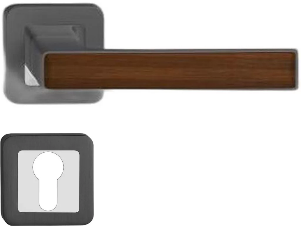 DECO ajtókilincs kerek rozettás grafit + diófa betét PZ