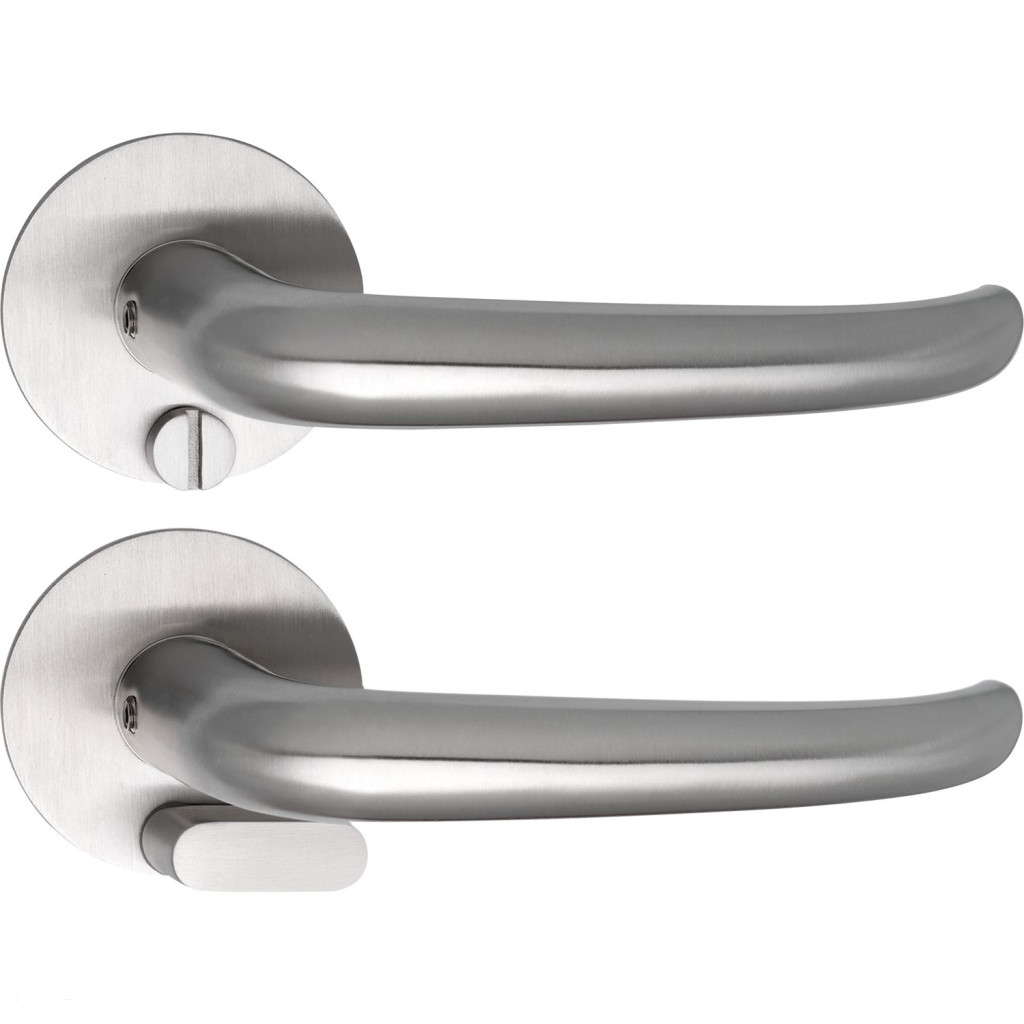 Solido laposrozettás kilincsgarnitúra BELFAST Solo kerek WC vésznyitó nemesacél