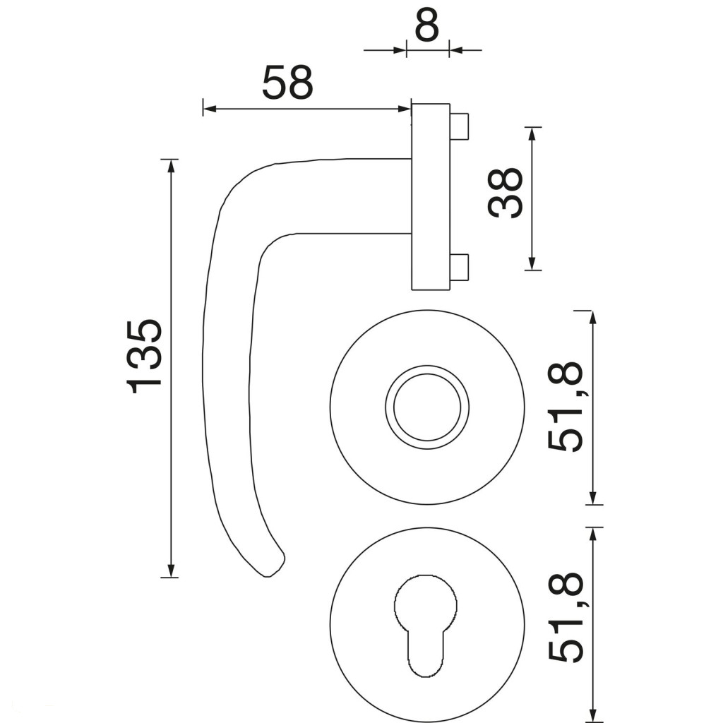 Kilincs helyes méretének kiválasztása::