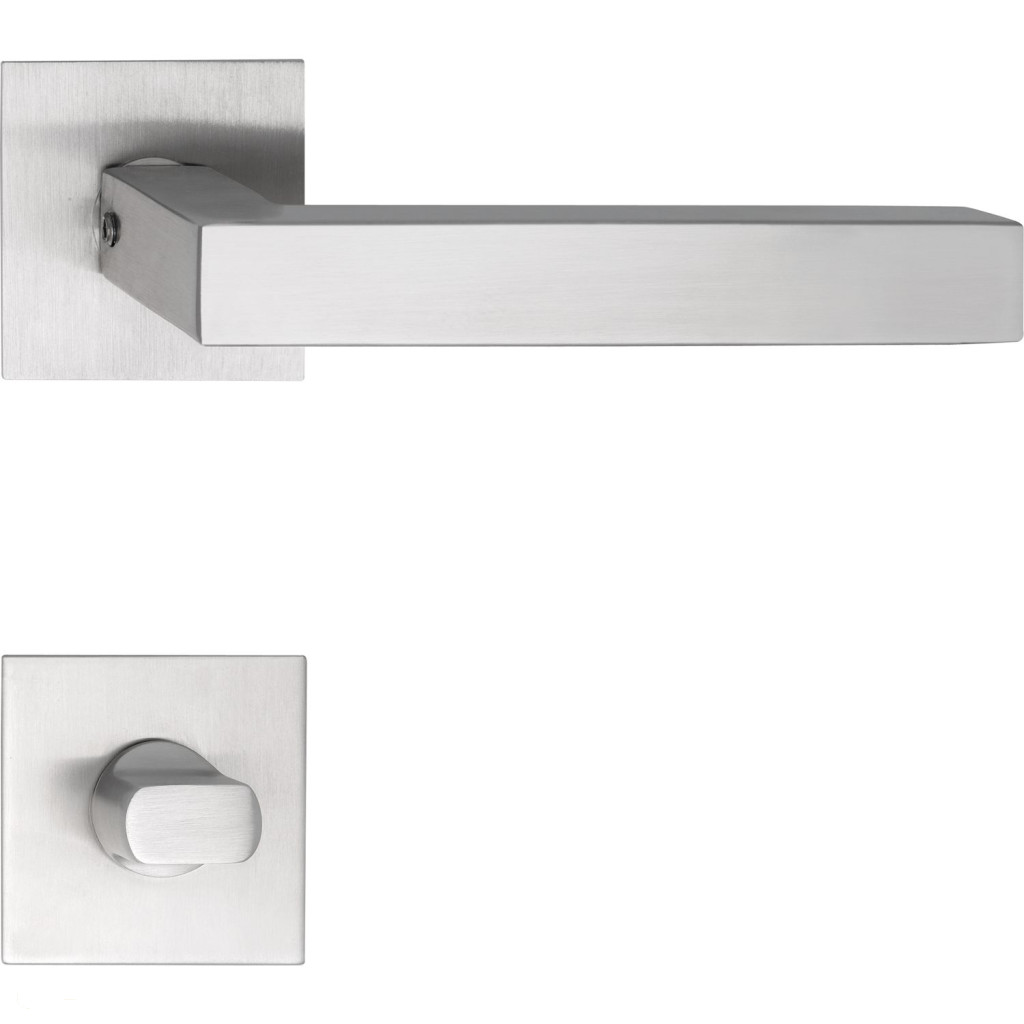 Marchesi rozettás kilincsgarnitúra MALMÖ lapos rozettás szögletes WC rozsdamentes matt